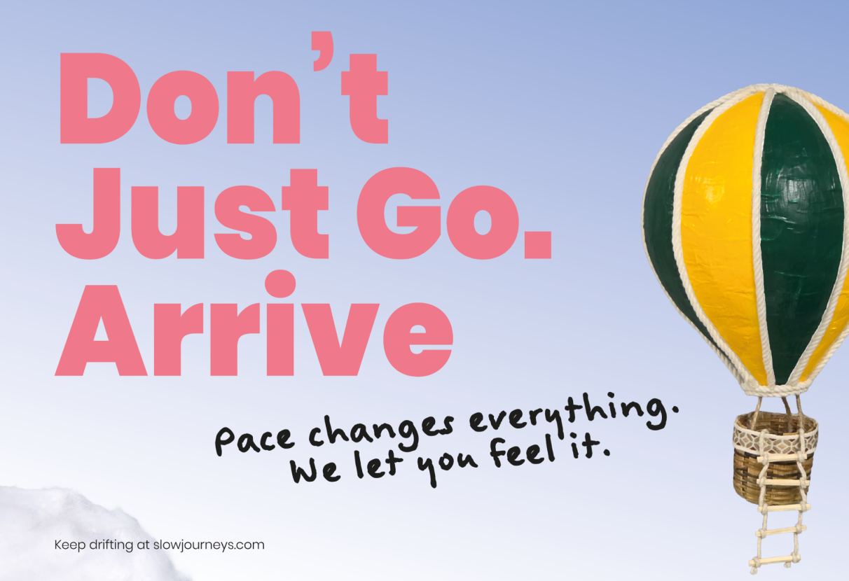 A quiet campaign exploring travel as something felt rather than measured. Handcrafted visuals and gentle words invite presence, pause, and a slower way of moving through the world. Designed to leave space, not fill it.